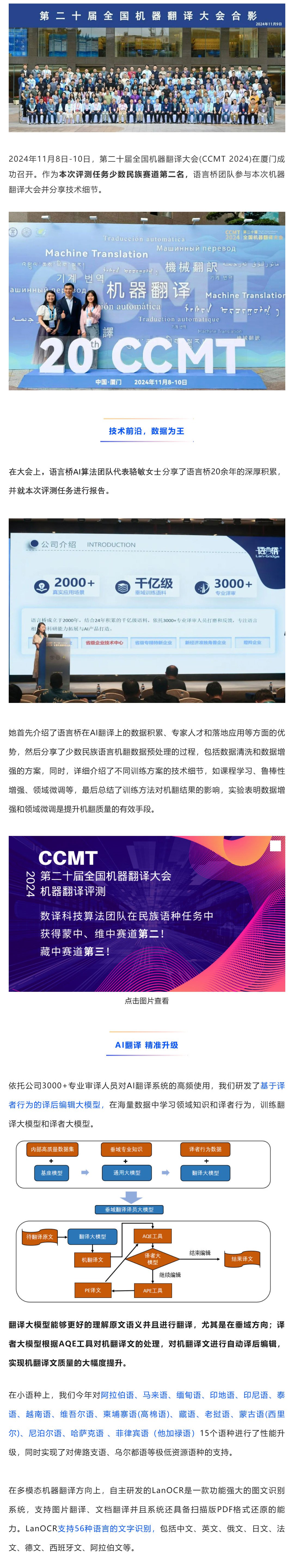 "近期,第二十届全国机器翻译大会机器翻译评测(CCMT 2024)成功举办,在比赛中不乏华为、OPPO、蜜度等大厂的激烈角逐,语言桥集团旗下数译科技算法团队在民族语种蒙中、维中、藏中"...[查看更多]